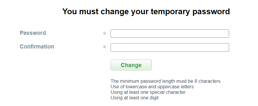 Upon initial access to AlbionPay UI, after logging in, the manager employee will be asked to create and enter a new password.