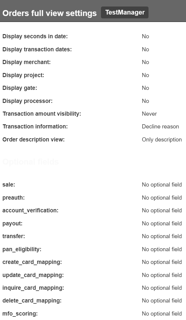 In this section it is possible to configure visible fields for detailed view in orders: