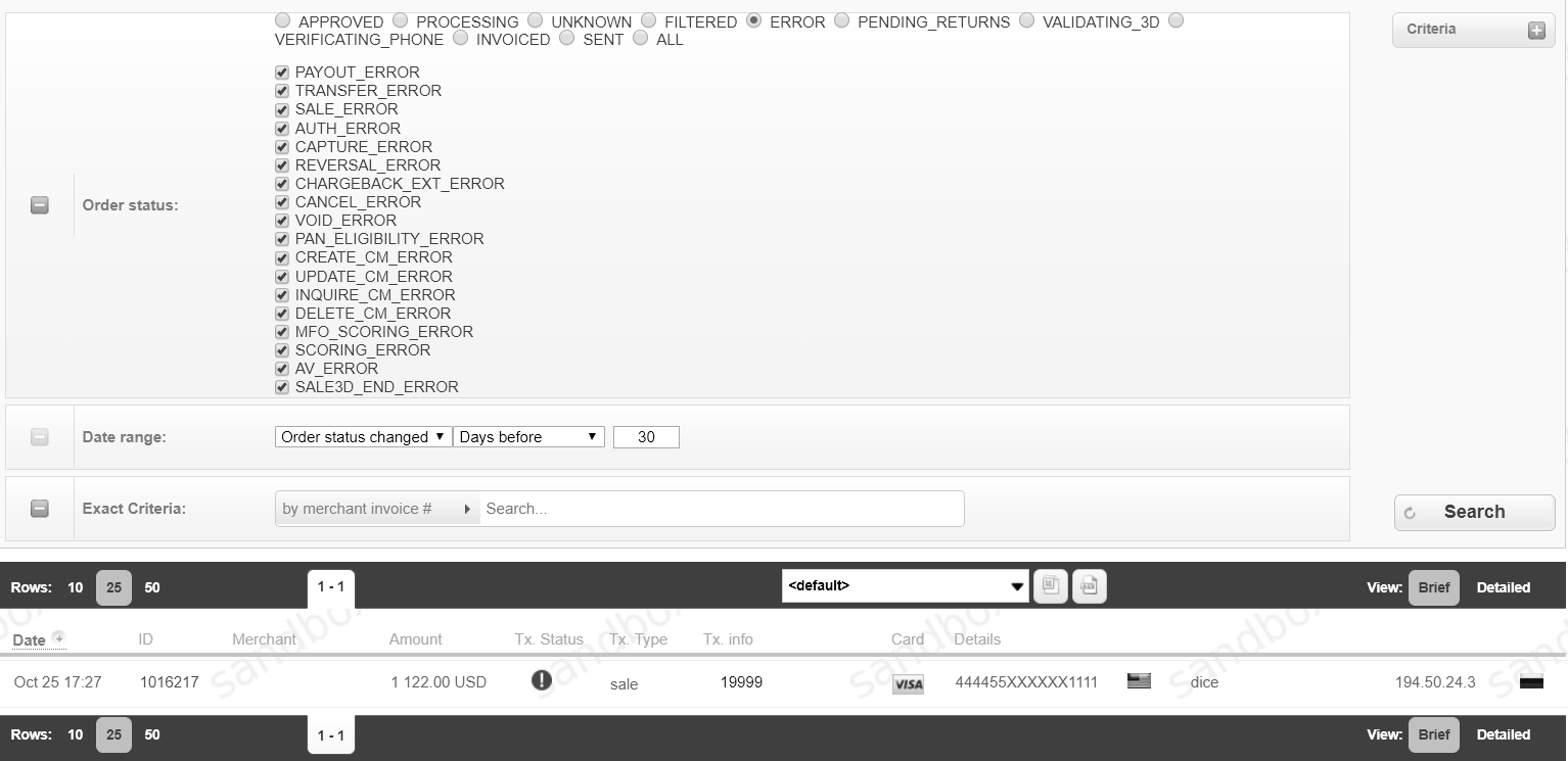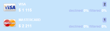 AlbionPay Payment Gateway also displays statistics per card payment system, per currency, as well as per payment method.
