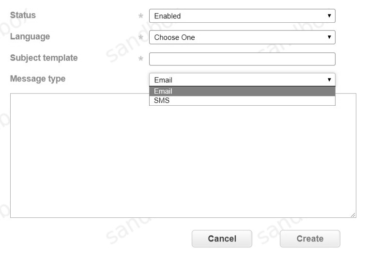 Message templates can be used to send SMS or E-mail messages to customer after each successful transaction. Merchant must provide their message server credentials to AlbionPay support manager in order to send such messages from Merchant address. Templates are created using the Template button. Example of filling the form: