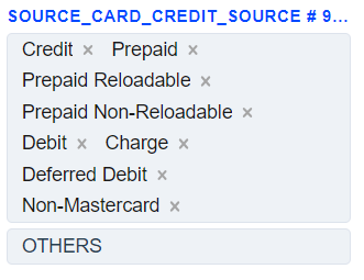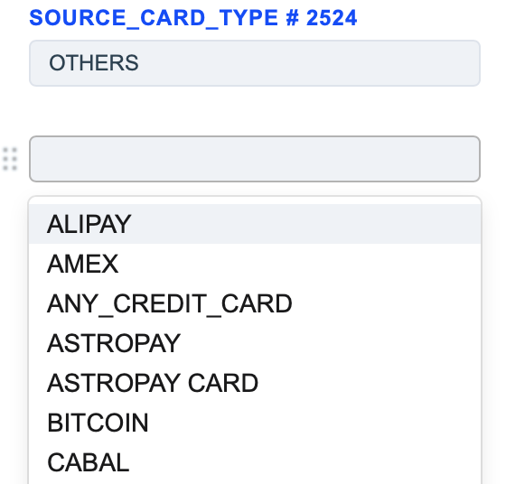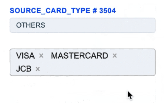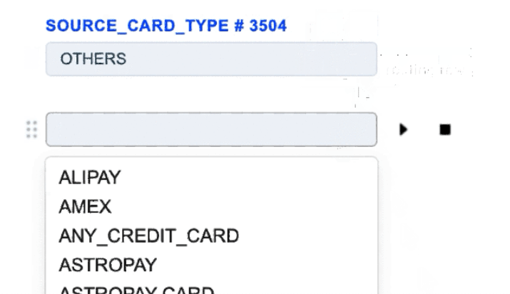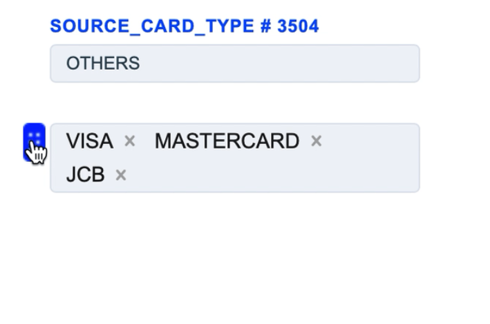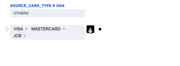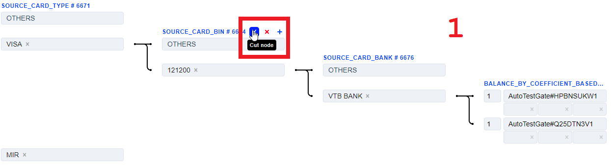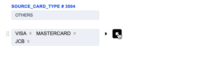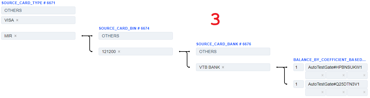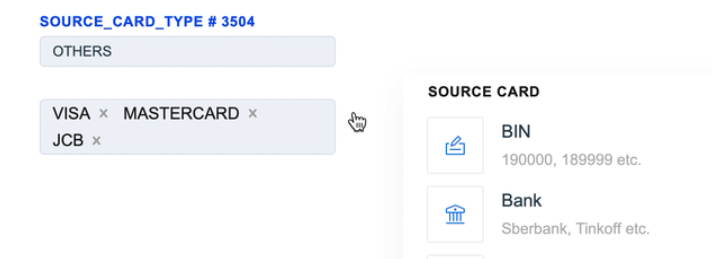 1. The Source Card Credit Source routing type allows to sort transactions by the sender’s card type. Select the needed card types of the sender and build a further route based on them.