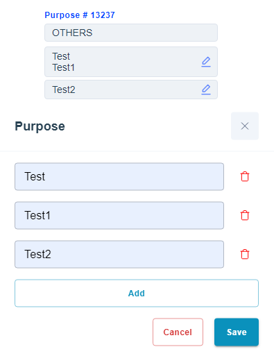 1. by purpose routing type allows to sort transactions based on purpose. It is possible to enter more than one purpose value to each routing row. New values are added using the Add button which is available when editing or creating. Purpose limited to 128 symbols.