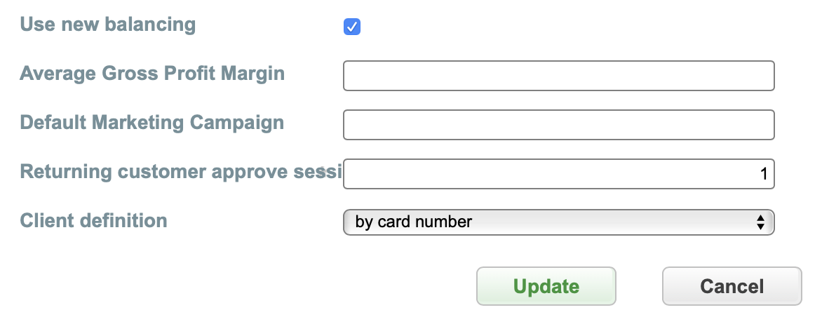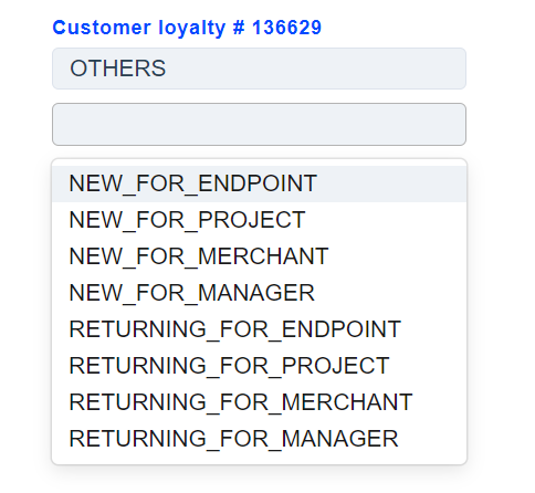 1. Customer Loyalty routing type is divided into endpoint, project, merchant, manager. Each of these levels has a Returning customer approve sessions count field that can be set for Managers by users with Superior role, while for Projects, Endpoints and Merchants - by users with Manager role. This value sets the number of transactions after which the customer will be considered “RETURNING”.