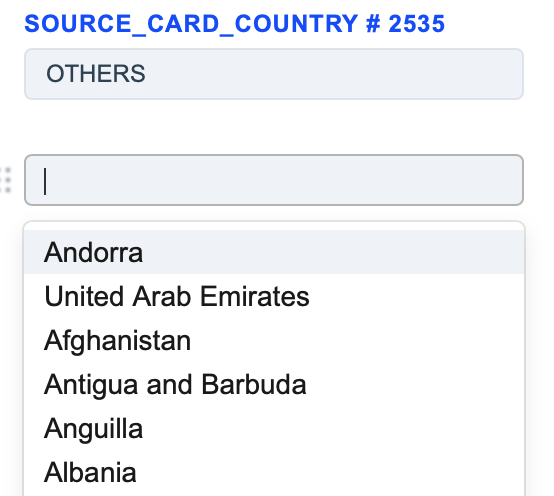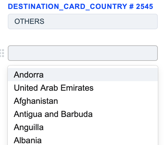 1. The Destination Card Country routing type allows to sort transactions by the receiver’s card country. Select the required card countries of the receiver and build a further route based on them.