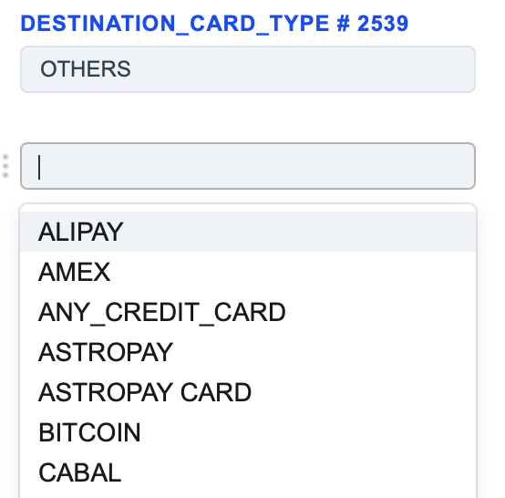 1. The Destination Card Type routing type allows to sort transactions by the receiver’s card type. Select the needed card types of the receiver and build a further route based on them.