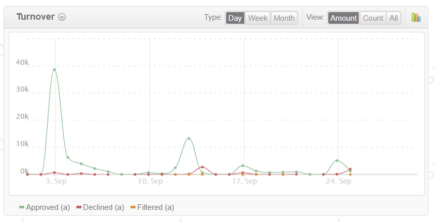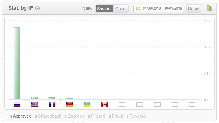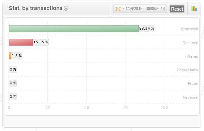 button: the ratio by volume of transactions or by amount of payments, as well as by type of transactions (sale, capture, transfer, etc). AlbionPay Payment Gateway also displays statistics on negative activity and earnings.